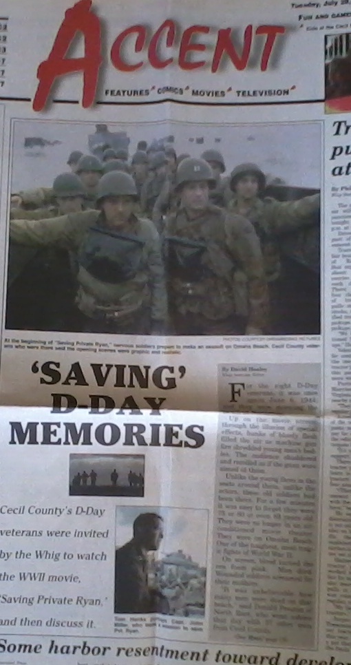 Back in July 1998 I went to see the new Tom Hanks’ film “Saving Private Ryan” with a group of Cecil County (Maryland) veterans who had been at D-Day. The idea was to get a reaction to the film from guys who had been there. For me, the story became one of my most memorable…