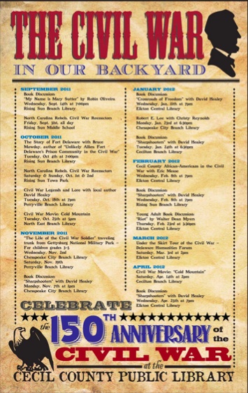 As we mark the 150th anniversary of this battle, this exploration of James McPherson’s book about the events leading up to Antietam—including events before and after the battle in Cecil County–should be a fascinating discussion for Civil War buffs. To register for the program and receive a copy of the book please call the library at 410-996-5600, ext. 481. (Reading the book is helpful, but not required).