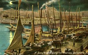 A postcard of the moonlit Baltimore wharves in the early 1900s, courtesy of The Historical Society of Cecil County.
