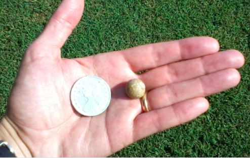 This is the musketball I found in the back yard, along with a reproduction War of 1812 coin I found on ebay.